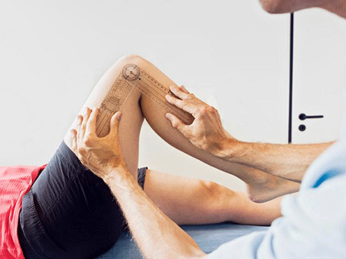 Bước 6: Ấn vuốt khớp gối: Dùng 1 tay ấn và vuốt vào khớp gối.